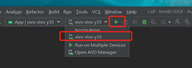 运行完模拟器以后这里会出现一个手机,然后点击运行即可调试了。