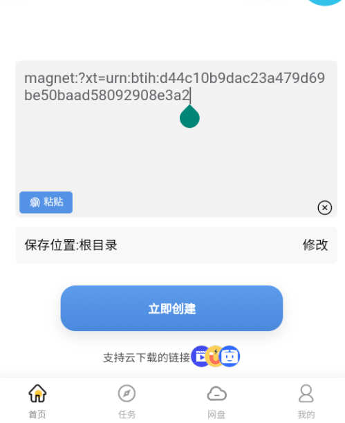 2、填写磁力地址,点击立即创建即可