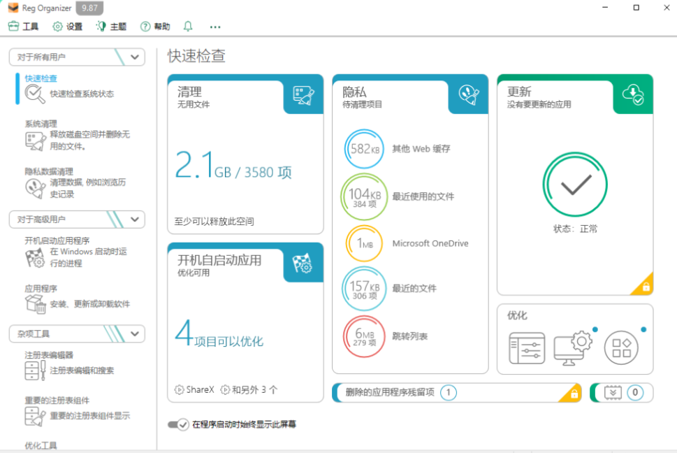 Reg Organizer 是一款功能强大的 Windows 注册表编辑与管理工具,它不仅提供基本的注册表编辑功能,还包含系统优化、清理、修复和备份等高级工具,帮助用户更安全、高效地管理 Windows 注册表。支持 Win10 和 Win11 系统。