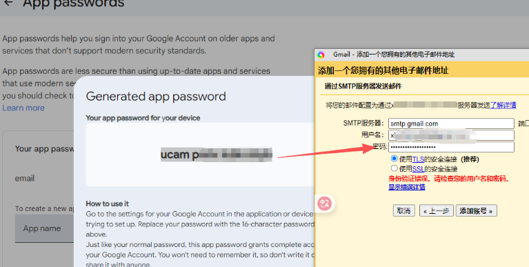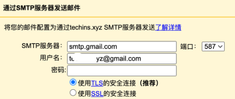 密码:您的Gmail应用专用密码(非常重要,普通密码不适用,下面会介绍如何获取这个密码)